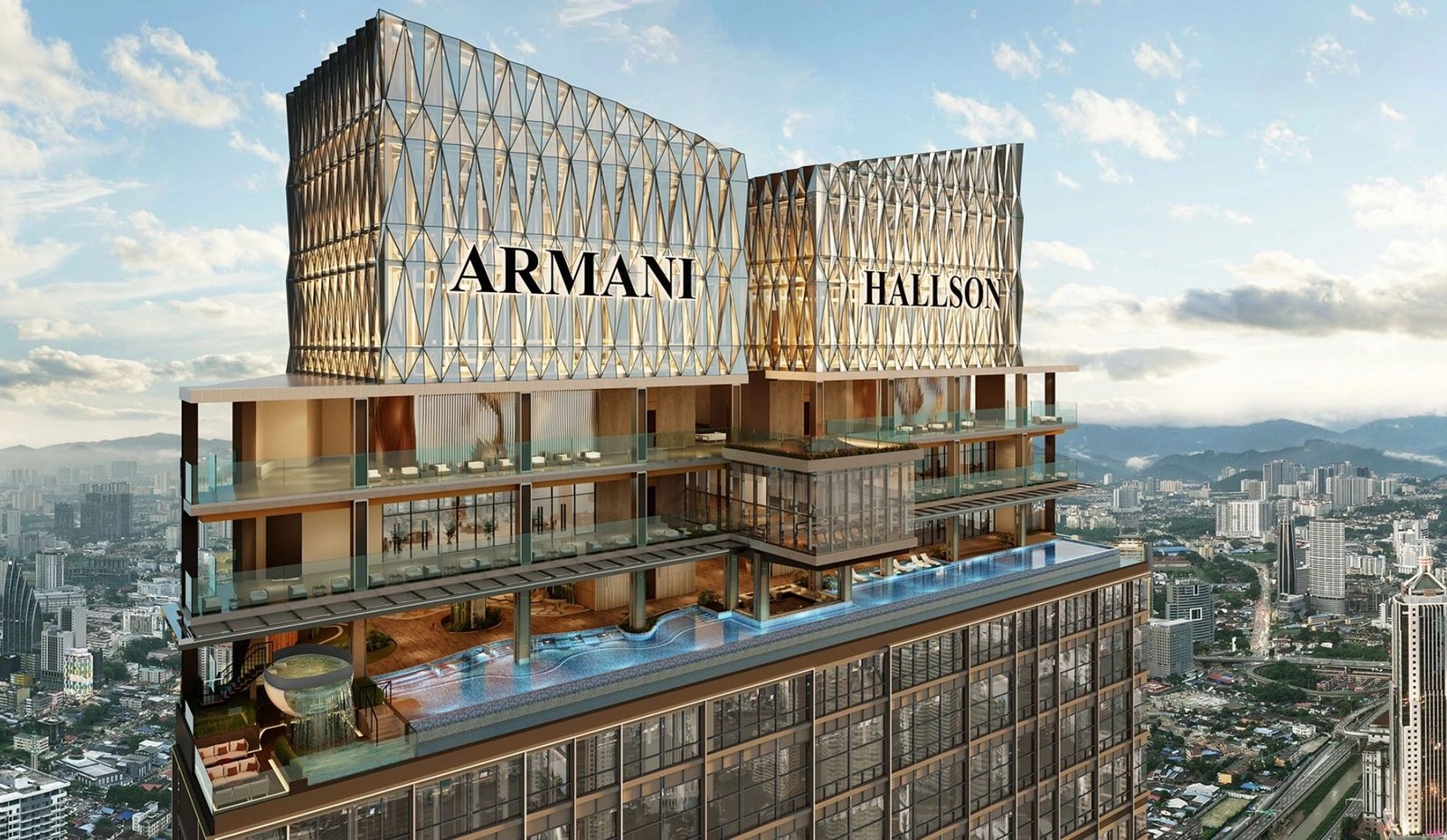 Armani Hallson KLCC is a landmark freehold mixed-use development by Armani Group, rising from 2.61 acres of prime land on Jalan Ampang — the former site of SJKC Lai Meng — just 300 metres from the Petronas Twin Towers.