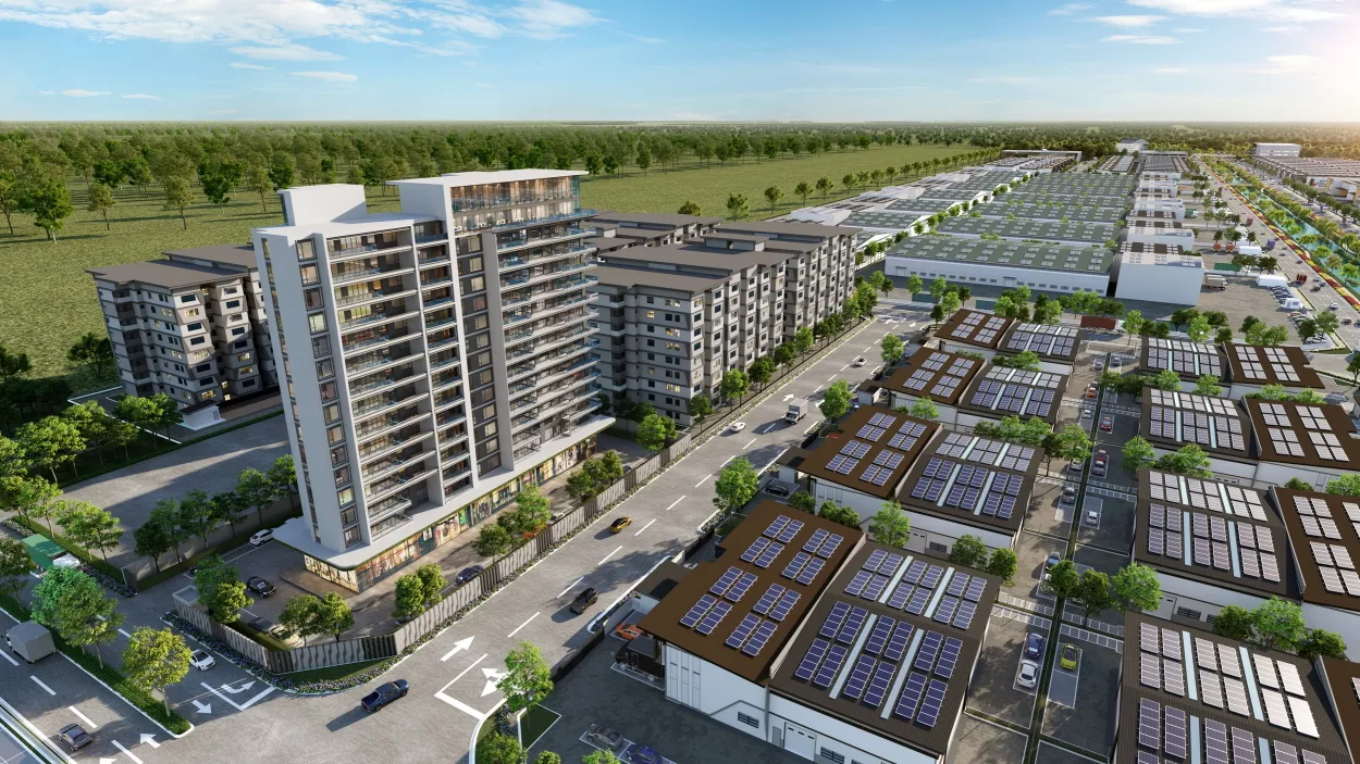 Phase 1 — spanning 230 acres with a GDV of RM2 billion — offers 101 factory units across semi-detached, detached, and link-detached typologies, plus 27 industrial land plots of up to 50 acres for built-to-suit development. Factories are IR4.0-ready, GreenRE-certified, and positioned just 12km from KLIA with direct highway access to Port Klang and KL City Centre.